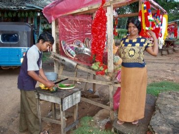 Assisting in preparation of Pujah offerings sold to pilgrims at KataragamaTemple