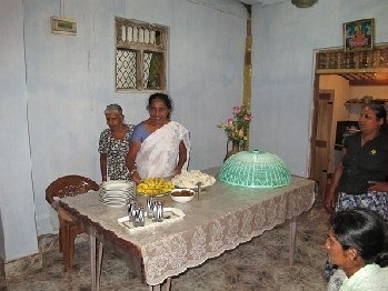 The rest of the women relatives and neighbours then partake of the specially cooked kiribat (rice cooked in coconut milk, sambola (onion, chili and tomatoes relish, and bananas