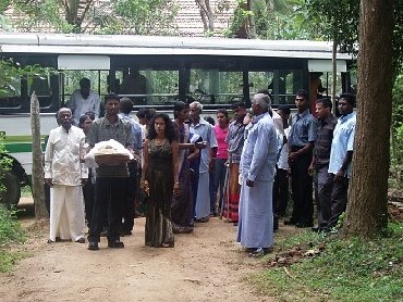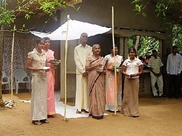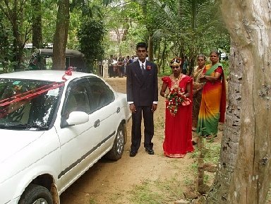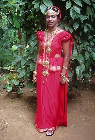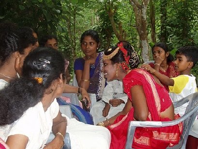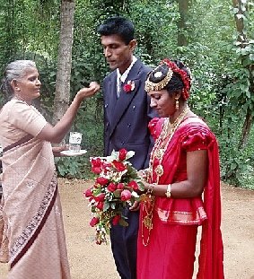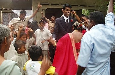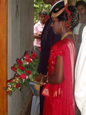 In the meantime the bride and groom have spent their first night at a hotel and then the bride is dressed in a red sari provided by her groom’s