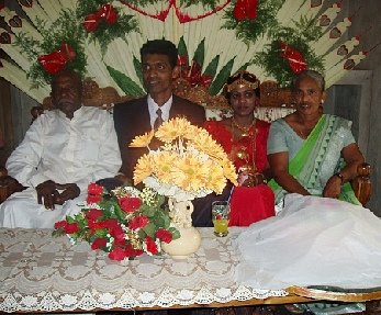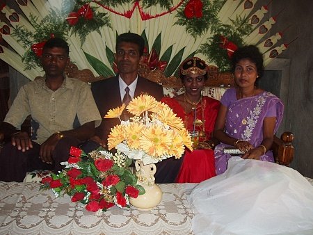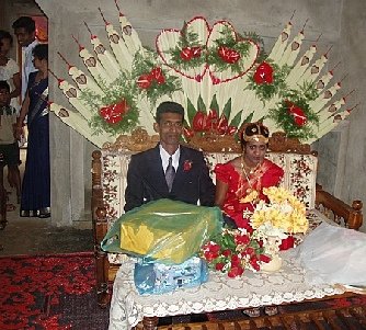 They then sit in a decorated chair together, for the speeches from both families. The guests present them with wedding gifts and are photographed in turn, with the bridal couple.