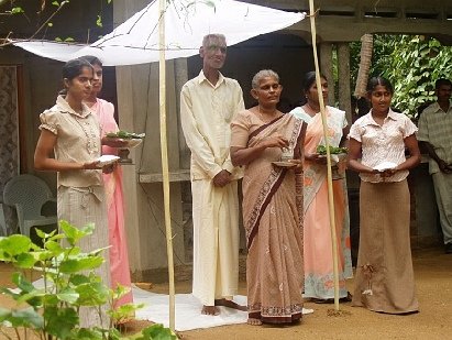 Traditional Welcoming of bride - bulat, rice, water etc. is offered to the new bride