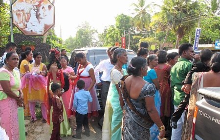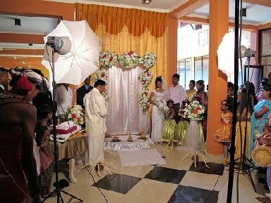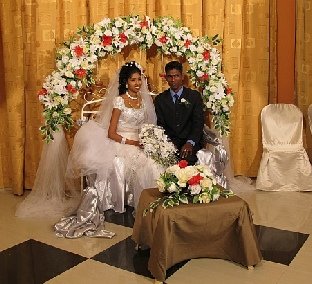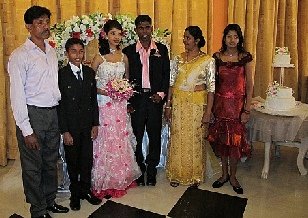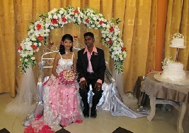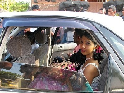 The bridal car then drives them off. The next day the Red Wedding is held. This is organised by the Groom’s family who provide all the clothes and arrangements. The bride is dressed in a red sari. When the bride’s family arrive they bring the dowry with them. This is unloaded into the bride’s new house. Usually it consists of furniture, cooking utensils plus golden jewels (that can be pawned if necessary) agricultural implements etc. according to what type of family she is marrying into .
